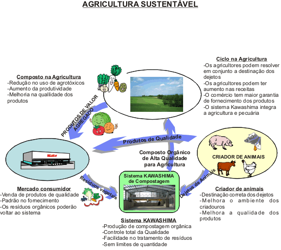 Com o sistema KAWASHIMA de compostagem, poderemos resolver os problemas de destinação de resíduos de supermercados, hotéis, restaurantes, indútrias e os dejetos de animais gerados no campo, conforme legislação.